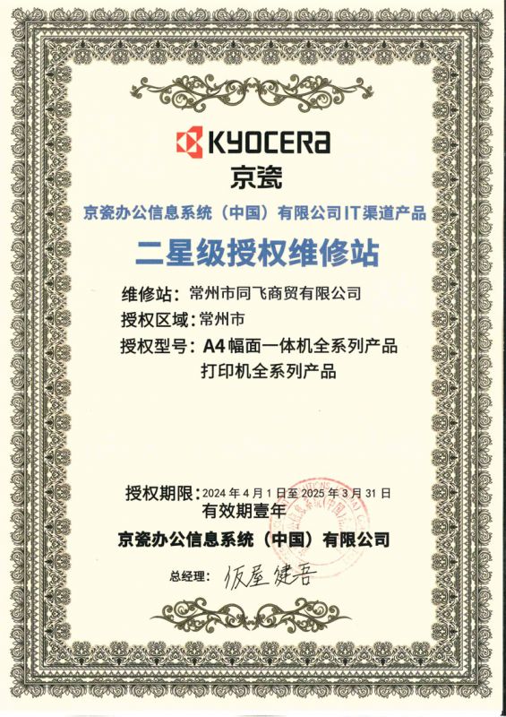 公司取得了日本京瓷復印機、打印機,映美針式打印機、天威耗材、安興紙業(yè)等眾多知名品牌常州地區(qū)代理權。